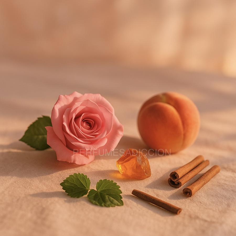 Una caricia cálida y elegante. Rosa sensual sobre piel luminosa, con un fondo suave y adictivo que se vuelve inolvidable. Femenina, profunda y seductora sin esfuerzo.