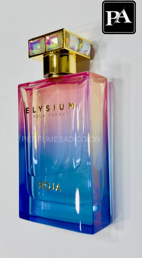 Interpretación femenina del universo Elysium: abre con una mezcla chispeante de bergamota, mandarina, melocotón y zarzamora que aporta brillo y jugosidad; en el corazón se despliega un bouquet floral (peonía, jazmín, magnolia, lirio de los valles, violeta, ylang-ylang y otros) que aporta densidad y textura, y el secado apoya la composición en vainilla, sándalo, cedro y una nube de almizcles para dotarla de presencia y calidez. La casa la presenta como la contraparte femenina del Elysium masculino, pensada para una mujer confiada y directa.