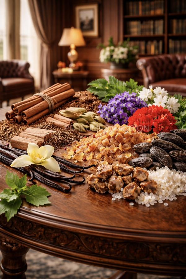 En el corazón aparece una mezcla cremosa y ligeramente floral donde el sándalo y el pachulí se combinan con heliotropo, geranio y jazmín. El heliotropo aporta una suavidad almendrada y polvosa que equilibra el lado especiado inicial, dándole un aire más seductor y redondo.